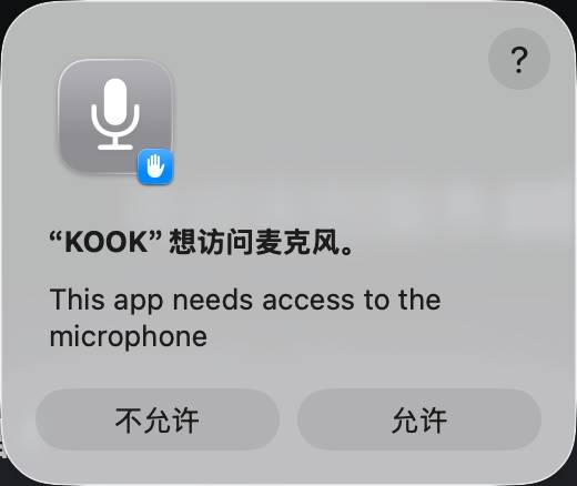 初次使用KOOK网页版进行语音时,浏览器会请求使用你的麦克风。这时,如果你选择了不允许,就会造成无法正常语音。本文档将引导你重新打开麦克风使用权限。